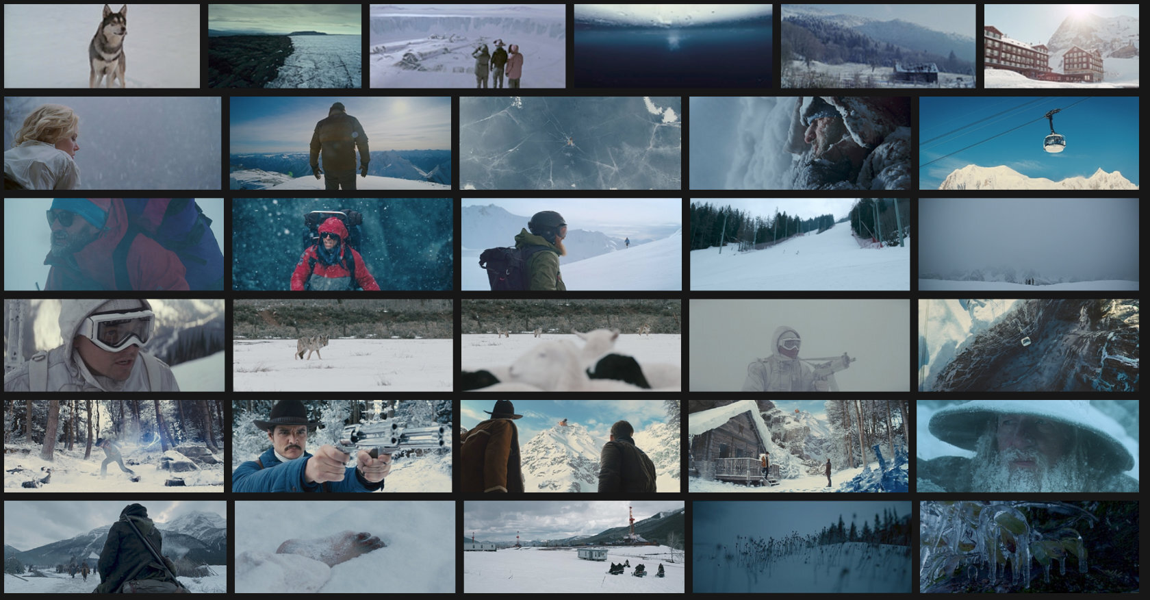 Zestaw kadrów referencyjnych na podstawie których przygotowałem storyboard, referencje kompozycji, koloru i oświetlenia - wszystko zanim dotknąłem kamery.